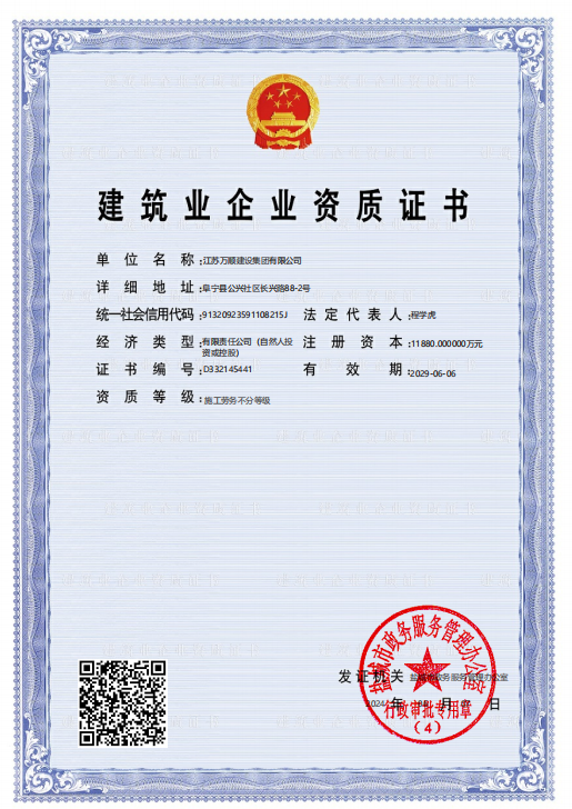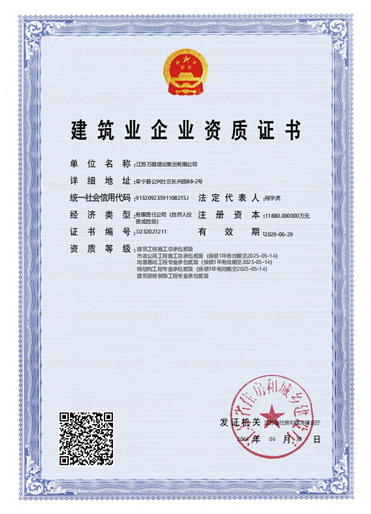 • 萬順集團晉升為江蘇省二級資質(zhì)建筑單位2015-02-28
